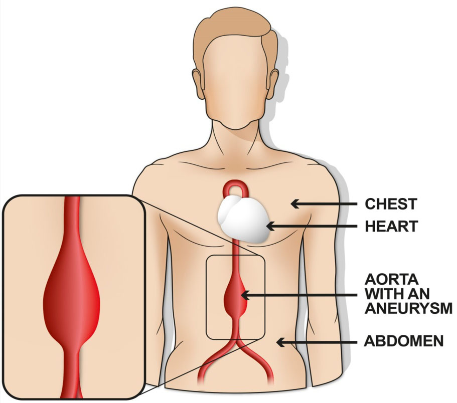 The aorta is the main artery supplying your body with blood and an Abdominal Aortic Aneurysm (AAA or Triple A) is a weakness in the abdominal section of this artery. The weakness causes a widening (bulging) in the artery walls. AAA is generally symptomless which means most people who have one will be unaware and not feel anything unusual.