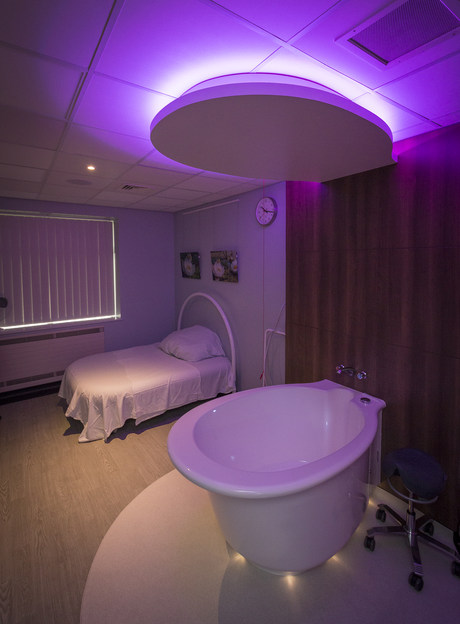 - Colour changing mood lighting, sofas and music playing facilities to help you feel more comfortable during your birth
