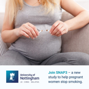 The SNAP-3 study is intended to complement existing hospital-based stop smoking support delivered through the hospital’s in-house NHS Maternity Tobacco Dependency Team.