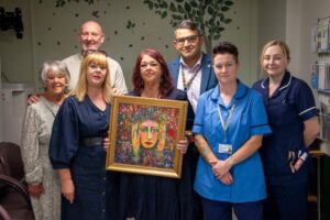 Now, a year and a day after surgery, Nicola has returned to Ward 4 at Hull Royal Infirmary to present Mr Razak and staff from the ward with the oil painting charting her journey from diagnosis to surgery and then recovery after the tumour, thankfully non-cancerous, was removed.