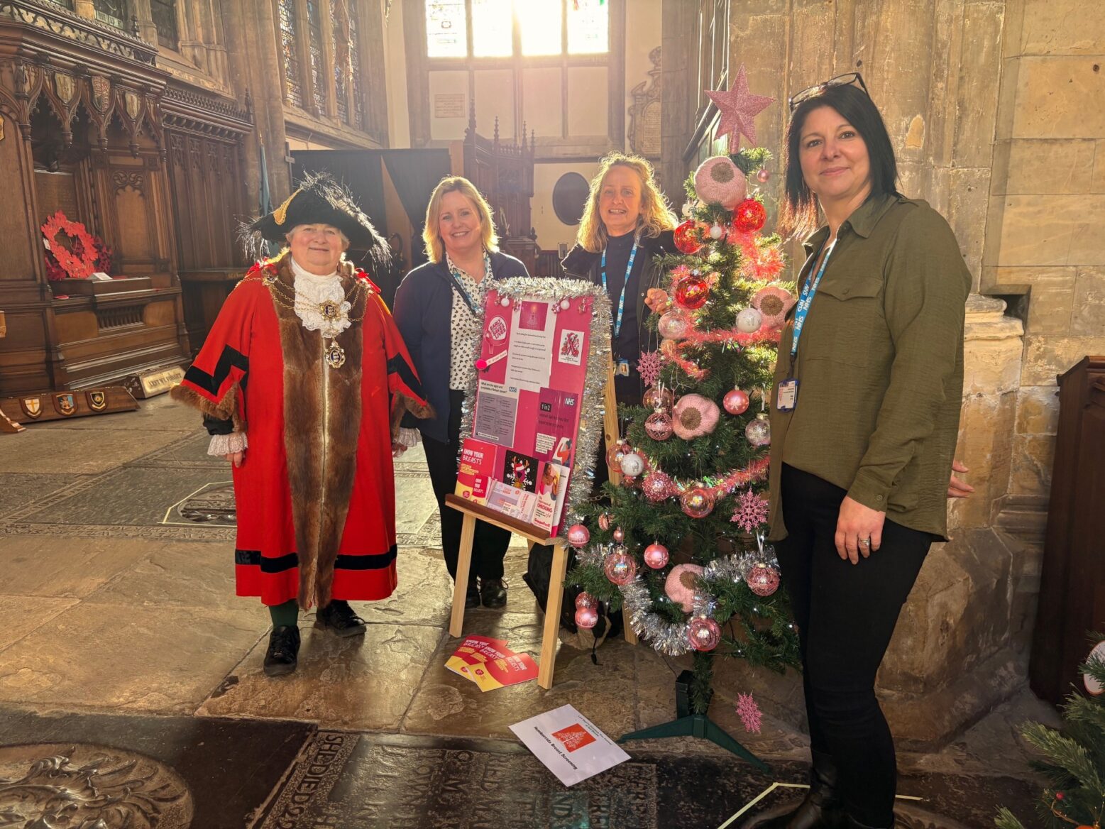 Humberside Breast Screening Team attended the Lord Mayor’s Christmas Tree Festival to create a National Breast Screening Christmas Tree, adorned with knitted breasts and bright pink decorations, the colour used for breast cancer awareness.