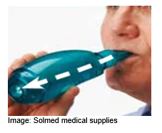 Breathe out through the device actively but not forcefully for approximately three to five seconds so that you feel the vibrations in your chest but do not empty your lungs. Ideally Keep your cheeks flat and firm to maximize treatment effectiveness.