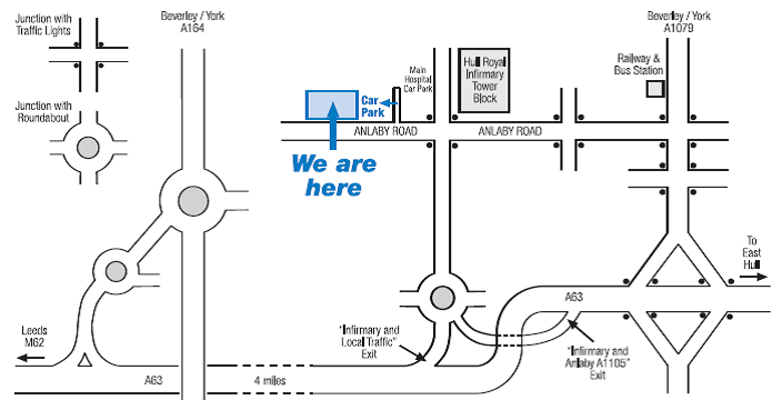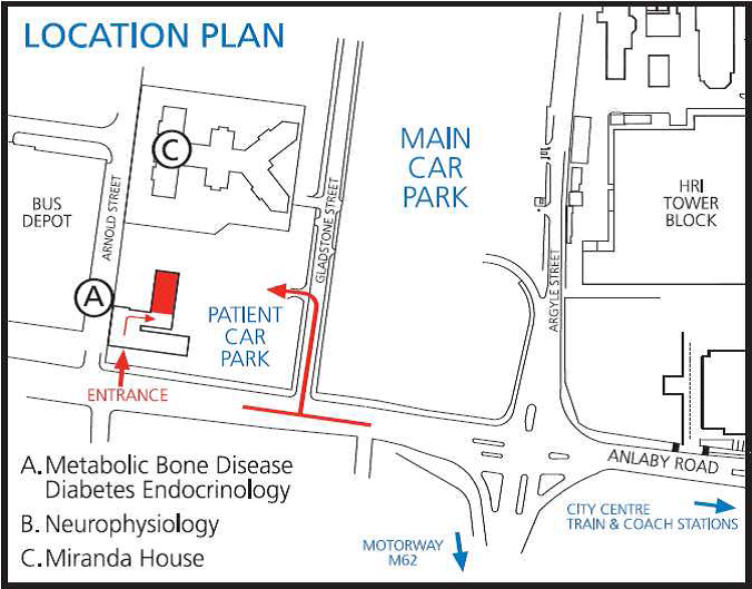 You should attend the Centre for Metabolic Bone Disease on the Hull Royal Infirmary site (map enclosed). You will be greeted by one of the receptionists and a medical technician will perform the scan.