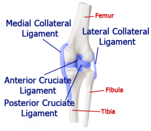 Your knee joint is made up of four major ligaments. There are two collateral ligaments (medial and lateral) on the sides of the joint, and two cruciate ligaments (anterior and posterior) in the centre of the joint.
