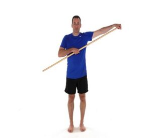 Allow your unaffected arm to help your affected arm lift outwards and upward as high as possible to the side of the affected shoulder