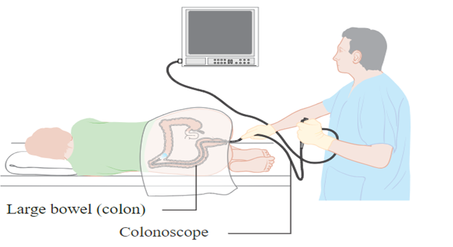 This is an examination of the large bowel using a long, flexible tube called a colonoscope. The tube allows the colon to be viewed directly and for pictures of the lining and samples of the tissues to be taken.