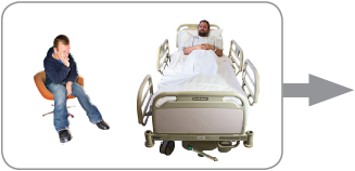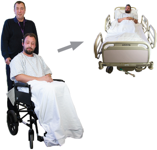 Gareth has tried to walk out of the hospital to go home.The hospital porter found him and helped him back to the ward. |