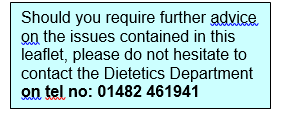 This leaflet was produced by the Nutrition & Dietetics Department, Hull and East Yorkshire Hospitals NHS Trust and will be reviewed in 2026