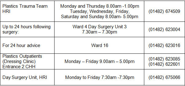 Ward 4 Day Surgery Unit 3 7.30am to 7.30pm | tel: 01482 623004 |