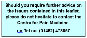 This leaflet was produced by the Pain Services Department, Hull University Teaching Hospitals NHS Trust and will be reviewed in (April 2026)