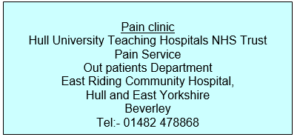 If you have any queries do not hesitate to contact the pain clinic Monday to Friday 9am till 4pm.