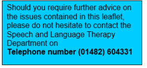 This leaflet was produced by the Speech and Language Therapy Department, Hull and East Yorkshire Hospitals NHS Trust and will be reviewed in April 2026
