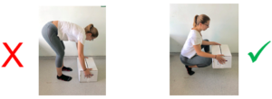 DO NOT LIFT heavy objects and avoid holding items at arms length. Always use a correct lifting technique, bending at the knees and not at your back (see following diagram). Avoid bending, twisting or leaning movements as these will increase the strain on your back.
