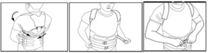 If you have a chest plate the application and removal process for the spinal brace is exactly the same. The chest plate will be fitted by your physiotherapist and should fit flush with the upper third of your breastbone. If at any point the chest plate is touching your neck the spinal brace has ridden up too high and needs reapplying lower down in line with the top of your buttocks.