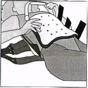 - Lift your bottom up off the bed and slide the back panel of the spinal brace underneath you.
