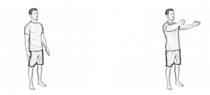 Stand with your arms relaxed on each side of your body. Make forward circles with your shoulders. Repeat in the opposite direction