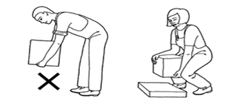 Avoid lifting heavy objects and also holding items at arm’s length away from your body. Always use a correct lifting technique, bending at the knees and not at your back (see diagram below). Avoid bending, twisting or leaning movements.