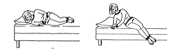 Roll onto your side and swing your legs over the edge of the bed, whilst pushing up with your arms (see diagram below).