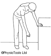 Stand leaning on a table with your unaffected arm. Let the arm, on the side which your surgery was performed, hang relaxed straight down. Swing this arm forwards and backwards.