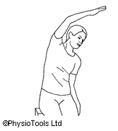Sit or stand. Lift the arm on the side which your surgery was performed, up towards your ear and then bend over to the side with your arm reaching over your head until you feel a stretch down your side.