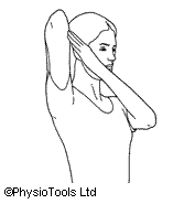 Sit in your chair or lie on your bed. Clasp your hands behind your neck with your elbows pointing outwards. Push your elbows back as far as possible to touch the back of the chair or the bed.