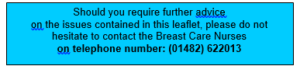 If you have any concerns or questions regarding your surgery, please contact the Breast Care Nurse Team on tel: 01482 622013.