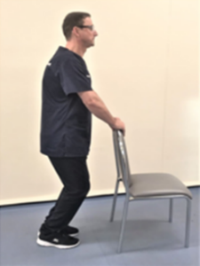 Mini squats – Stand tall holding onto a support if needed. Bend your knees slightly until you reach a perched position, then push back into a standing position with your legs.