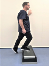 Step-ups – Hold a handrail for support. Step up onto a step with 1 foot, then bring the other up to join it. Step back down with one foot followed by the other. Repeat at a steady pace.