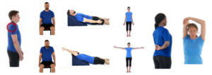 Complete the following exercises 5 times each, 3 times a day, or as directed by your physiotherapist until your normal level of pain free movement is achieved.