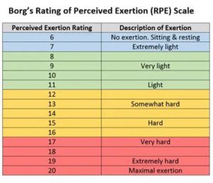 The Rating of Perceived Exertion Scale is a good way of judging your exercise intensity.