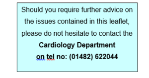 This leaflet was produced by the Cardiology Department, Hull University Teaching Hospitals NHS Trust and will be reviewed in 2026 – HEY 831/2026