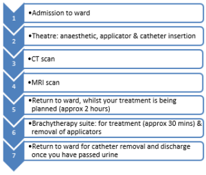 You will be admitted onto the ward the day before to your Brachytherapy treatment.