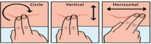 - Start with small circles along the length of the scar either with your thumb or first two fingers.