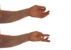 Now slide your thumb down this finger as far as possible until you feel it stretching. Hold 10 seconds. Repeat the same exercise as described above while touching your thumb to your middle finger, then your ring finger and finally your little finger. Each time hold the stretch 10 seconds. |