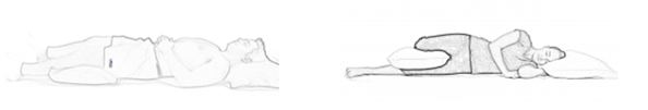 - You may sleep in any position which is comfortable for you. However, if possible, do try and avoid sleeping curled up as this will mean your spine is in a bent position for a long period of time (don’t worry if you wake up in this position). Using pillows to support you in bed (as in the pictures) might help make you more comfortable.