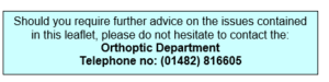 This leaflet was produced by the Orthoptic Department, Hull University Teaching Hospitals NHS Trust and will be reviewed in June 2026.