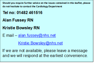 Should you need further advice on the issues contained in this leaflet, please do not hesitate to contact the TAVI Team on tel: 01482 461516