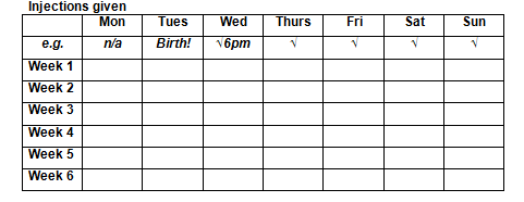 A record like the one below may help you to remember to take your low molecular weight heparin medication.