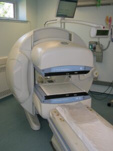 Gamma-cameras are large imaging machines which take pictures of the radioactive tracers from the outside of your body.